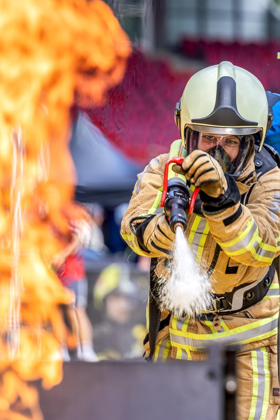 Al enige ervaring met trappenloop in brandweeroutfit.